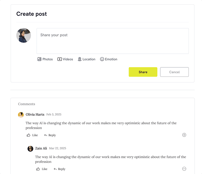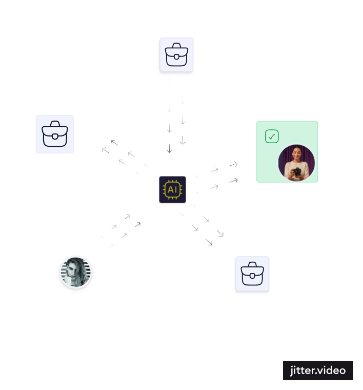 تستخدم تقنية المطابقة التلقائية بالذكاء الاصطناعي ملفاتك الشخصية لربطك فورياً بالعملاء والمواهب المناسبين تماماً لاحتياجاتك. هذا يوفر عليك الوقت الذي كنت ستقضيه في البحث اليدوي، ويتيح لك الحصول على المزيد من فرص العمل أو إيجاد الكفاءات بشكل أسرع.